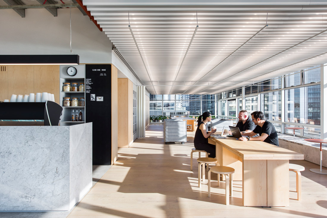 Natural light through skylights, and visual connections to the outdoors provide a creative environment. Solar and glare protection should be considered to ensure optimum comfort.