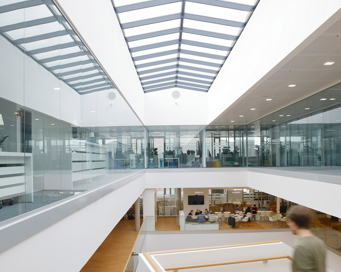 Roche buildings are composed with a balanced use of natural light. The combination of daylight and artificial lighting schemes for workplaces are important planning aspects.
