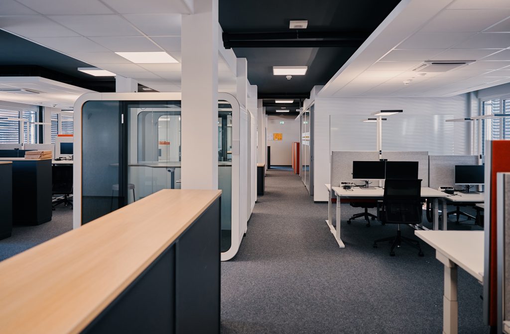 The Flexible Modular Office building at site Mannheim was assembled in a record breaking 2.5 weeks. Consisting of 135 modules, the three story building is home to 11 NewWork office neighborhoods and one conference zone. With the H-shaped outer shell of the building in place by late February of 2020, fit-out was completed after four months and not even Corona could stop the dedicated handymen and professionals.