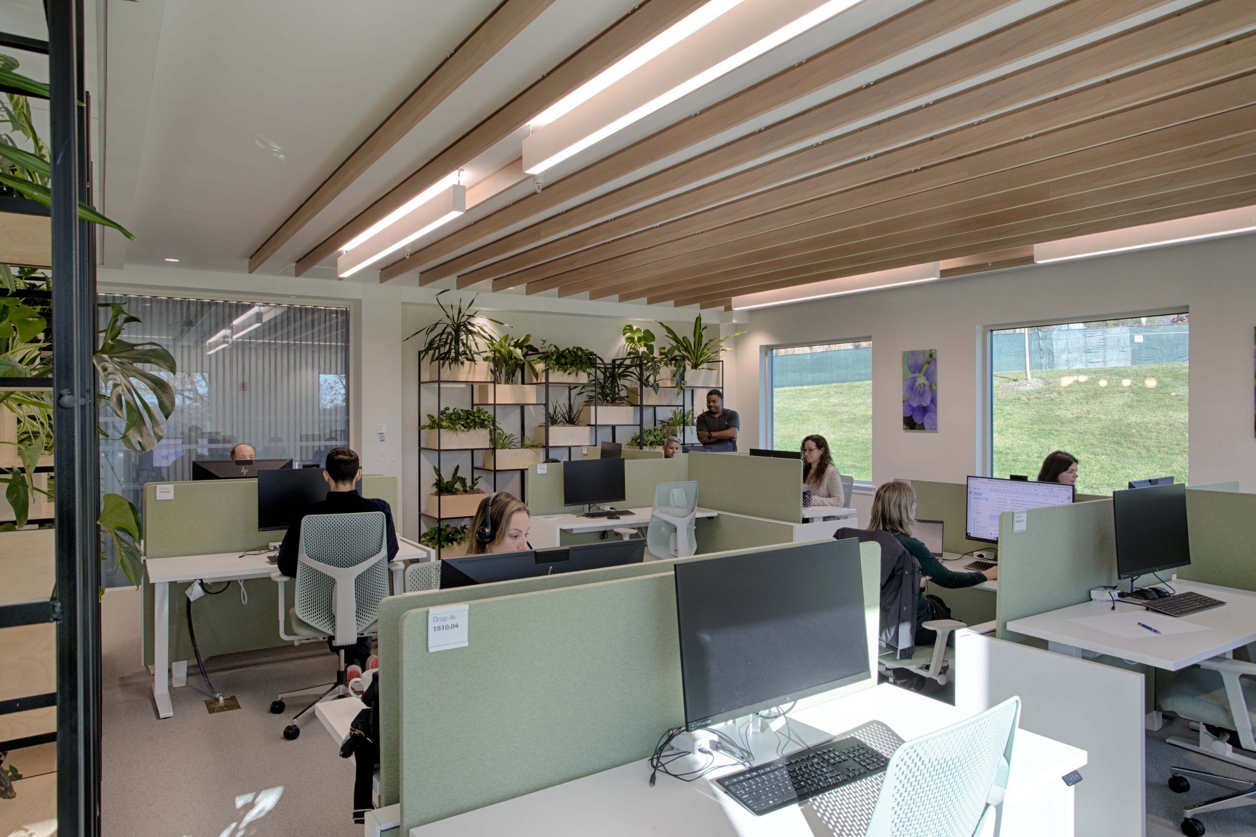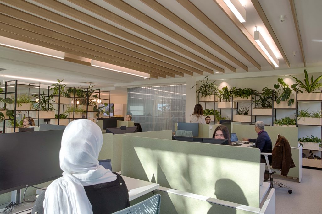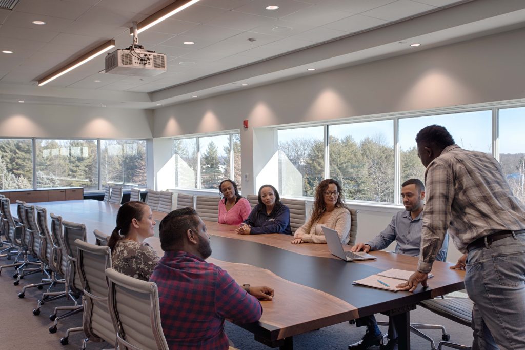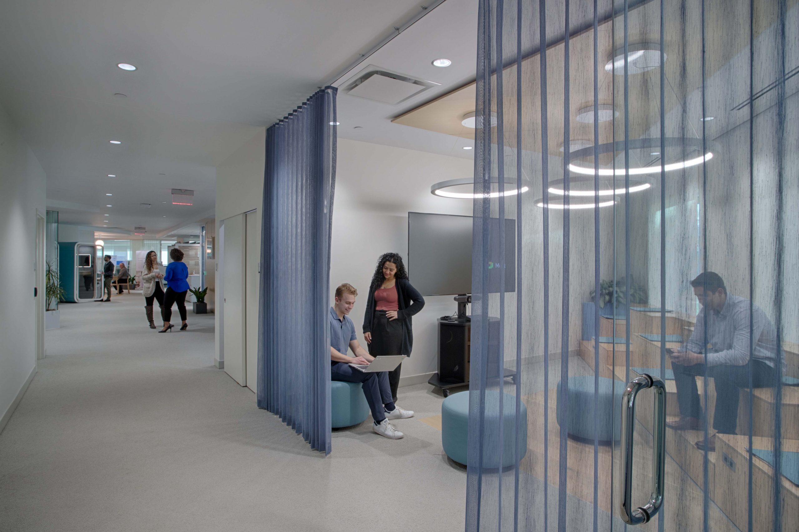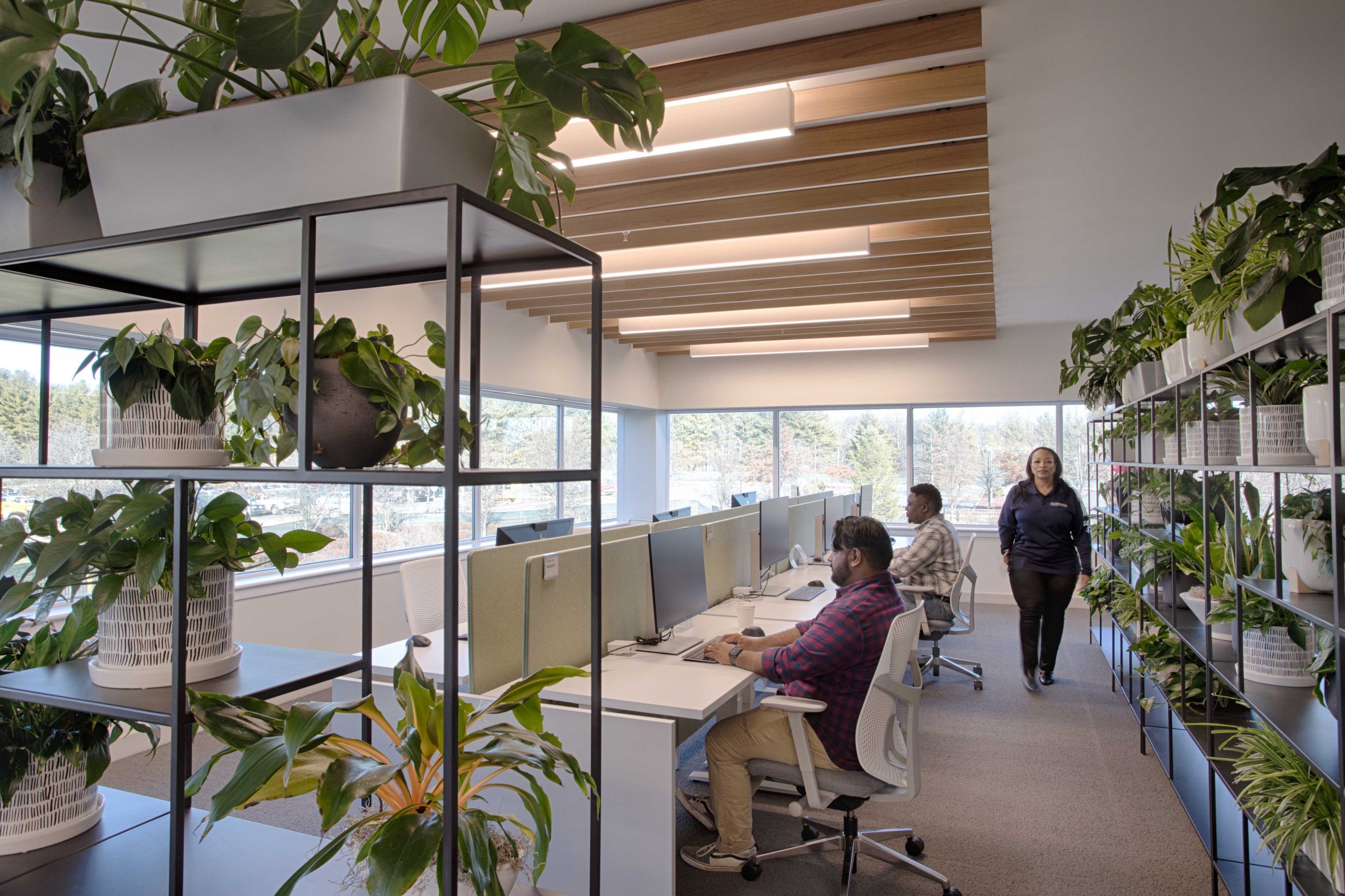The Roche Molecular Systems, Inc. facility located in Branchburg, N.J. originally built in 1987, has served the company and employees well for several decades. It became abundantly clear however that the style and philosophy of the original interior office space had become outdated and needed a major redesign. The traditional perimeter executive offices with the window views were eliminated in favor of access to windows and natural daylight for all. There are numerous studies that highlight the benefit of daylight in the workplace as a physiological stimulant for our visual system and our circadian rhythm. The connection to the exterior is very important when designing interior office space and this philosophy guided our design.