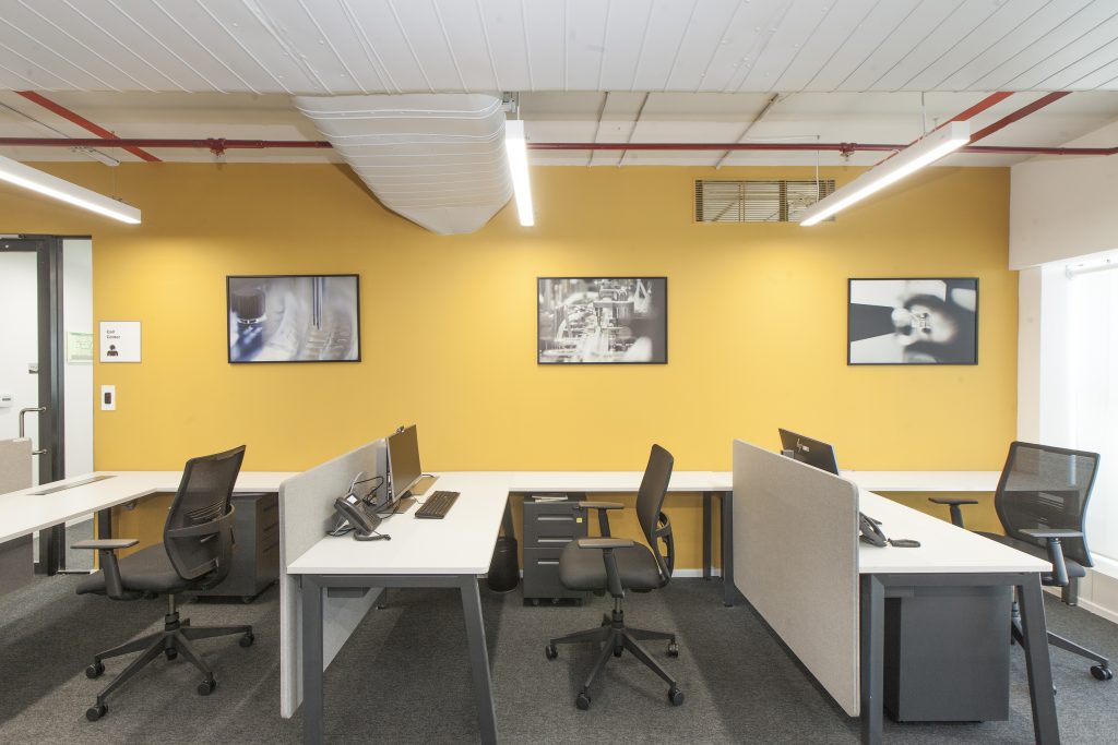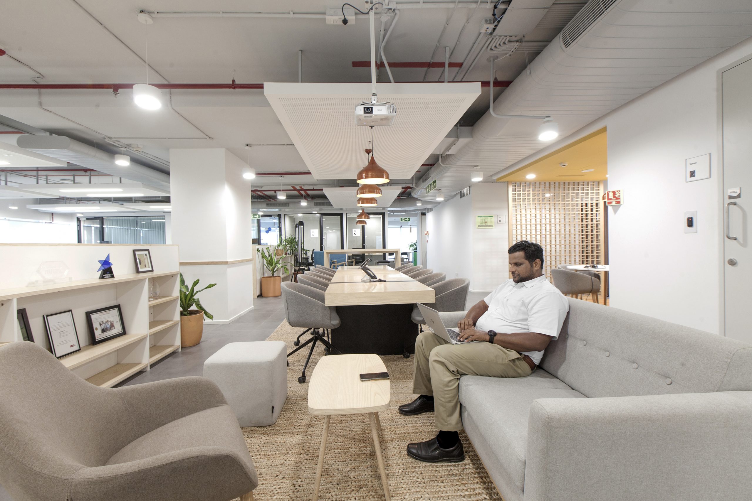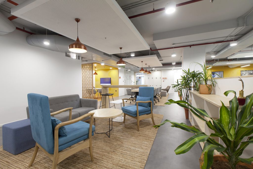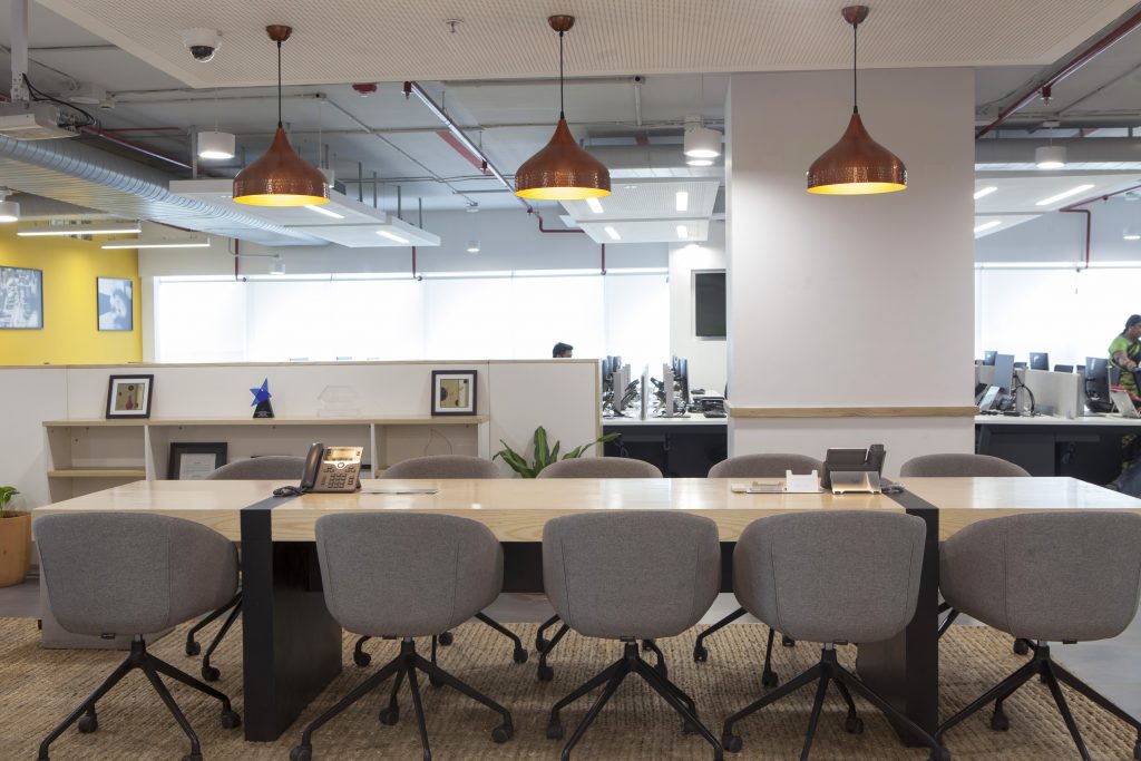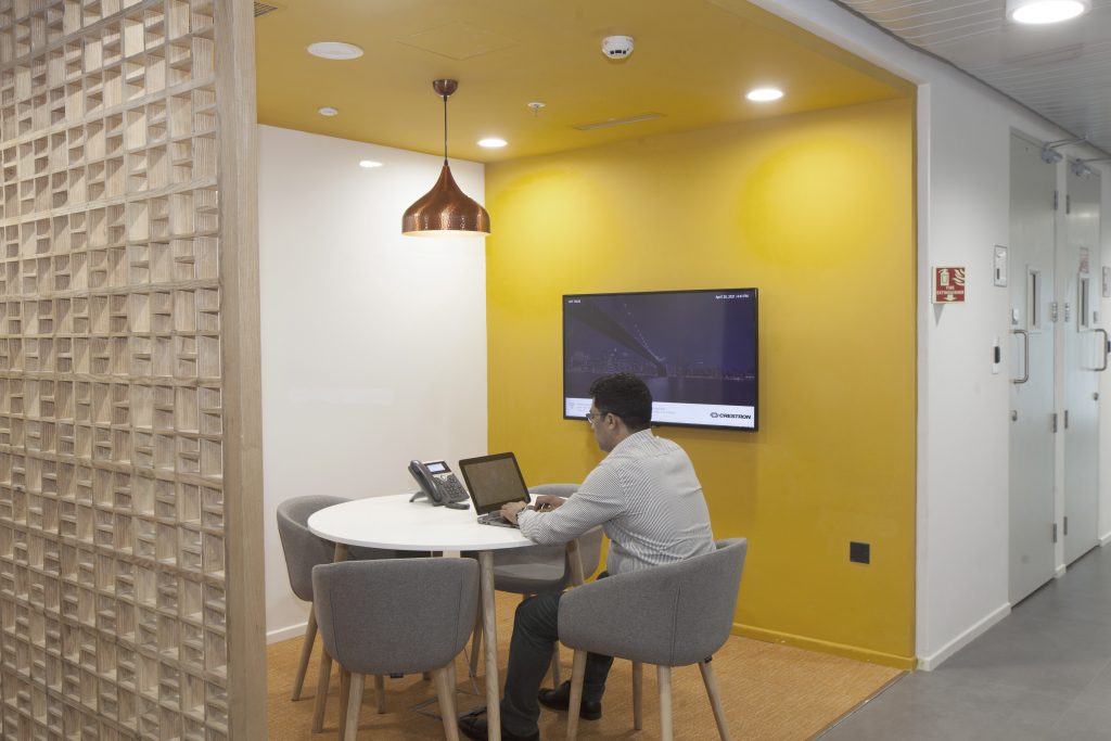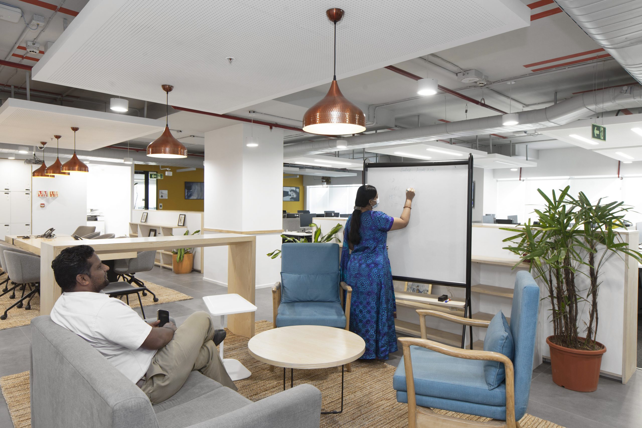 The color palette references local context with bright accents such as saffron yellow, the color of the city of Chennai, while local plant species enhance the work environment and contribute to users’ well-being.