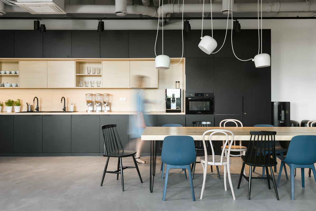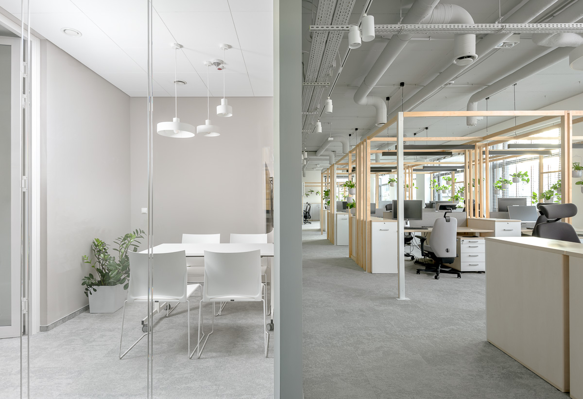 Newly fitted-out 600 sqm premises provide a modern open environment with opportunities for agile working and increased collaboration. Natural local materials and plants help promote sustainability and contribute to well-being, creating a warm and inviting atmosphere throughout the office. The workspace features unique architectural elements and furniture referencing local context, balanced by minimal formal expression rooted in function.  The design takes advantage of substantial ceiling heights, which enhance the volume of the space and add to the feeling of openness.