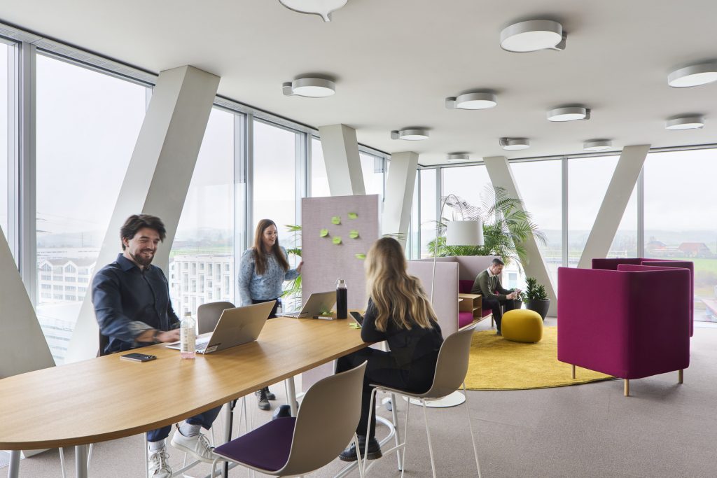 Roche Diagnostics International is located in the typical Swiss pre-Alpine landscape of gentle rolling hills and lakes, with mountains in the background. The site contains a mix of office buildings, R&D laboratories and operations facilities and offers a great place to work. Over the past years, most office areas spread over six buildings have been transformed into a flexible activity-based working concept called ‘WorkSmartRDI’. Today, the work environment in the individual buildings present themselves as a harmonious whole with uniform quality, attractive design and a versatile mix of work zones. With the refit, additional capacity has been created by delivering flexible shared workplaces in the current building portfolio and allowing for some reduction of rented space in the vicinity of the site. Employees now benefit from a consistent room quality that promotes higher satisfaction and productivity.