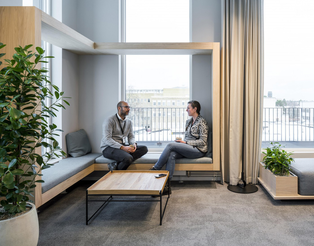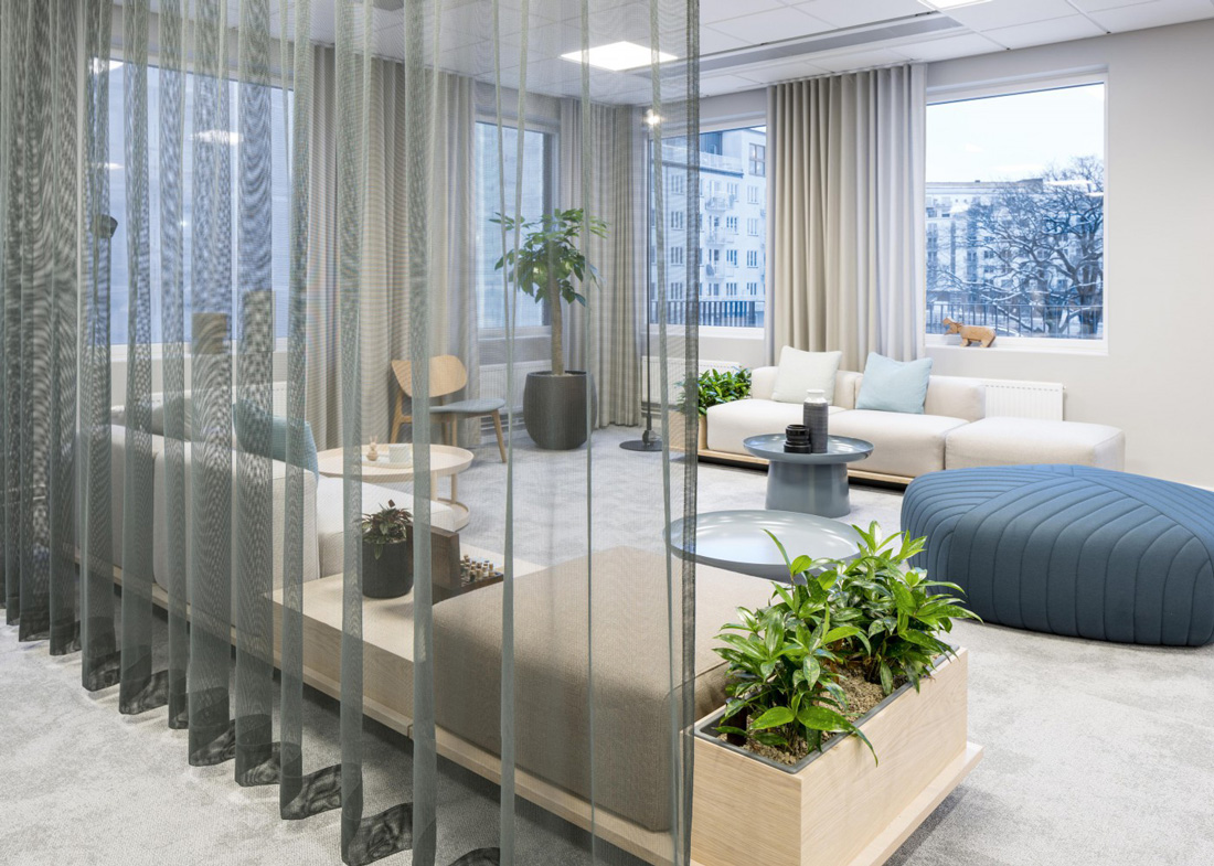 The height of elements that define open work areas should be carefully considered. Natural light should be allowed to flow throughout. Visual connection between different areas should be intentionally designed, avoiding monotony and encouraging users to move freely around the workplace.