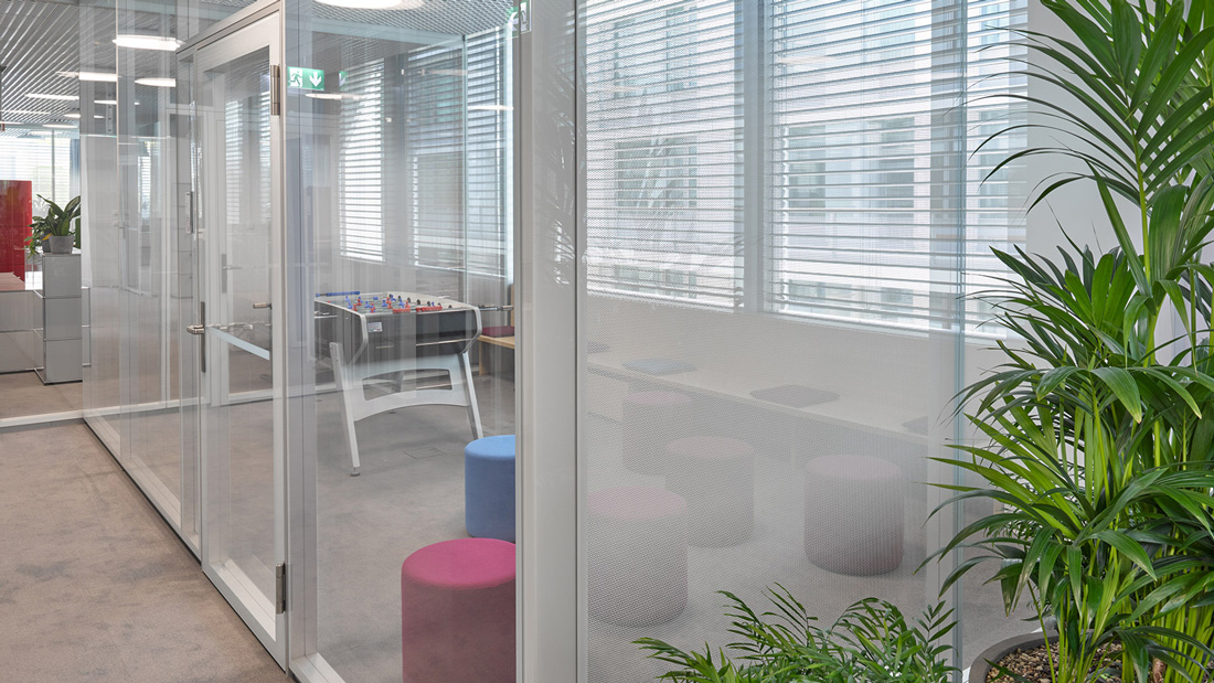 - All the partitions of an enclosed area that are oriented to windows should be transparent, additional privacy can be provided by curtains, which give flexibility while adding acoustic value if required.