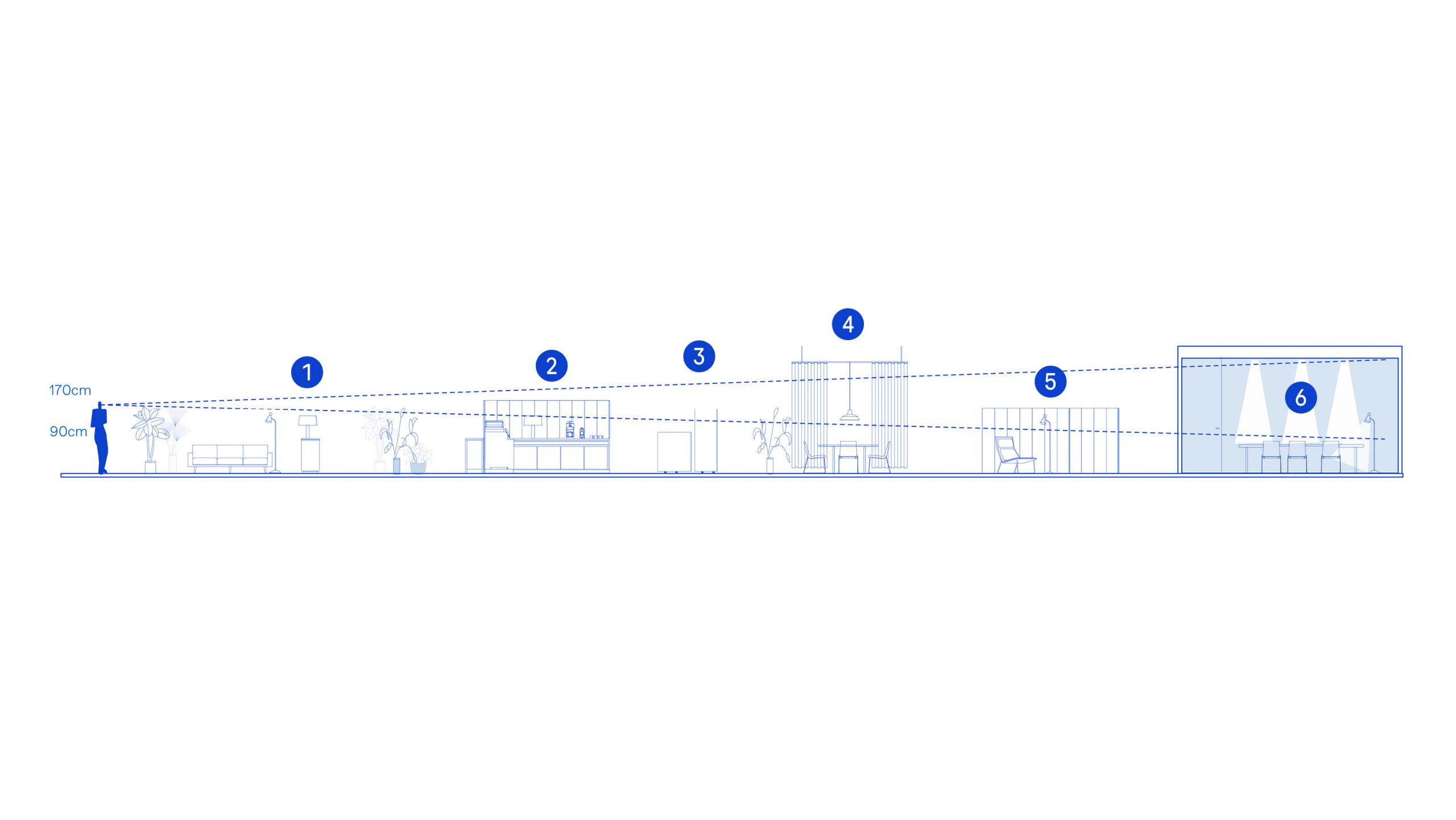 - Translucent curtains allow light to flow and offer a flexible solution for delimiting different spaces.
