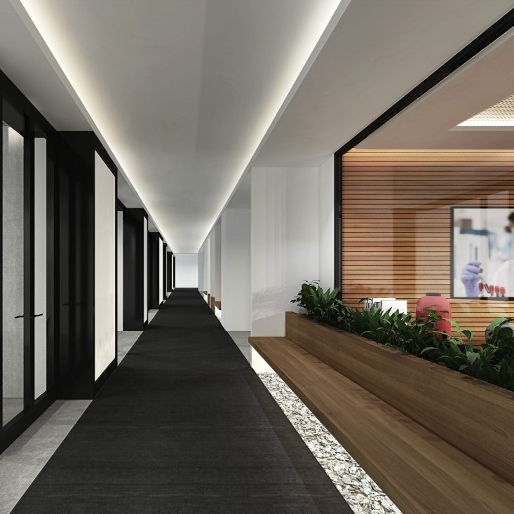 Artificial lighting is used to define spaces according to their purpose. It should be installed only where it is needed, have a balanced intensity, and minimize glare and reflection. LED technology is our standard, following K-18 Roche Group Directives, with a goal  of incorporating innovative lighting solutions for a cost-effective and energy-conscious scheme.