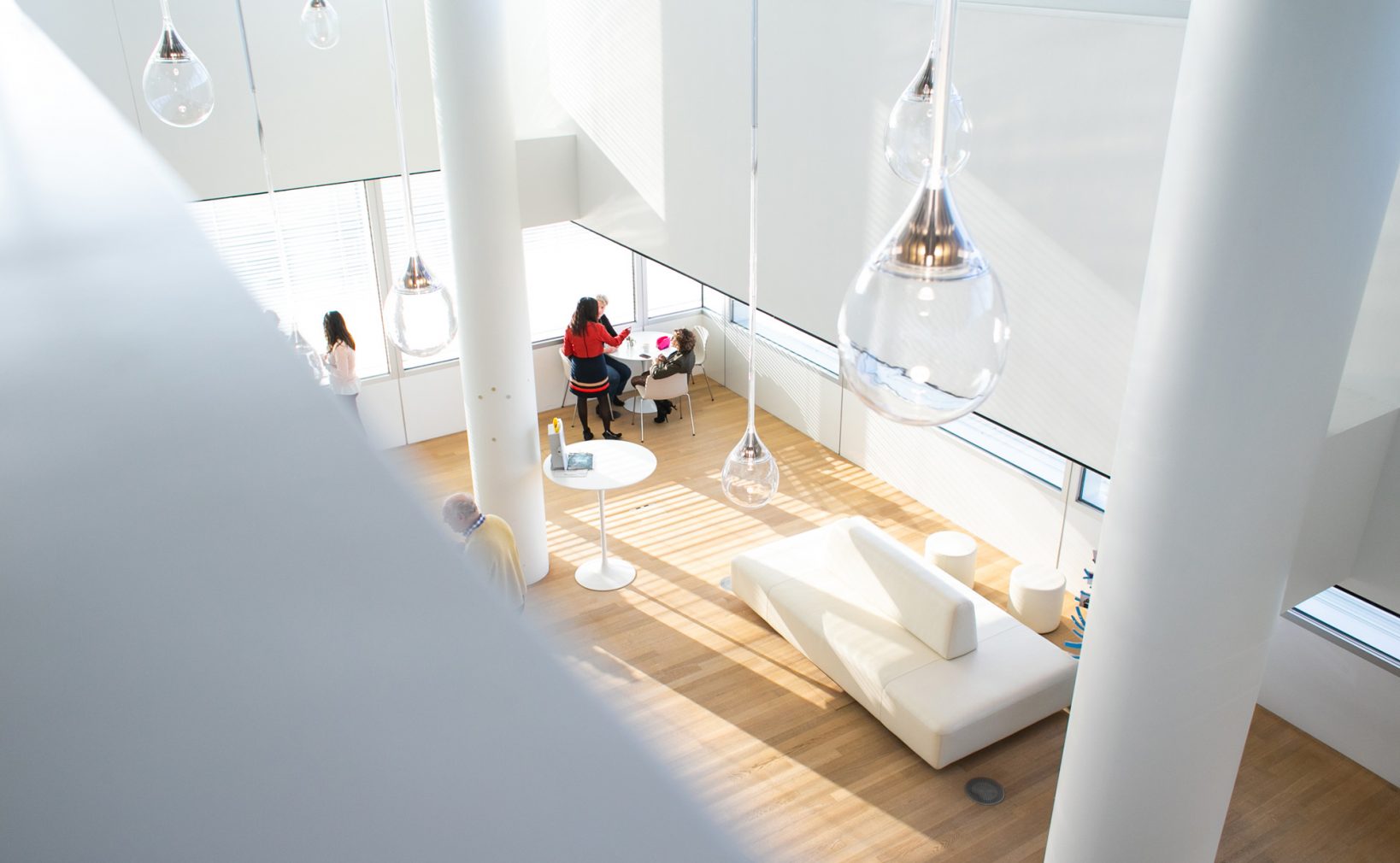 New forms of regenerative light are being recognised for their beneficial effects on the body and mind. Spaces with natural light and dynamic adaptable artificial lighting improve the function of our circadian rhythm, which can increase our happiness, energy levels and productivity. It is important to design an appropriate combination of daylight and artificial light, together with a balanced use of indirect and direct lighting.