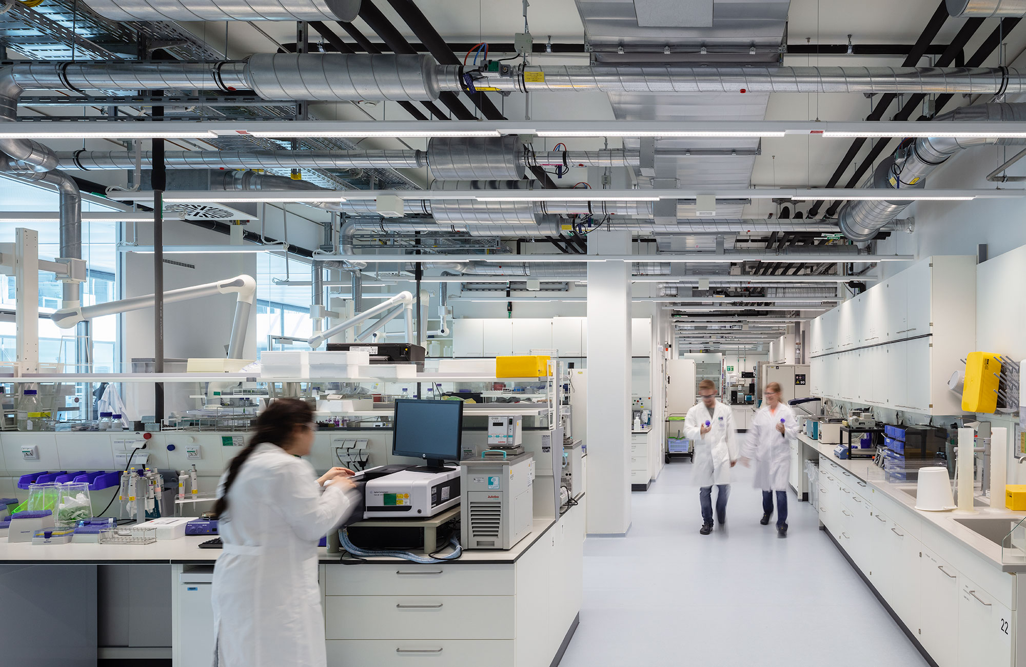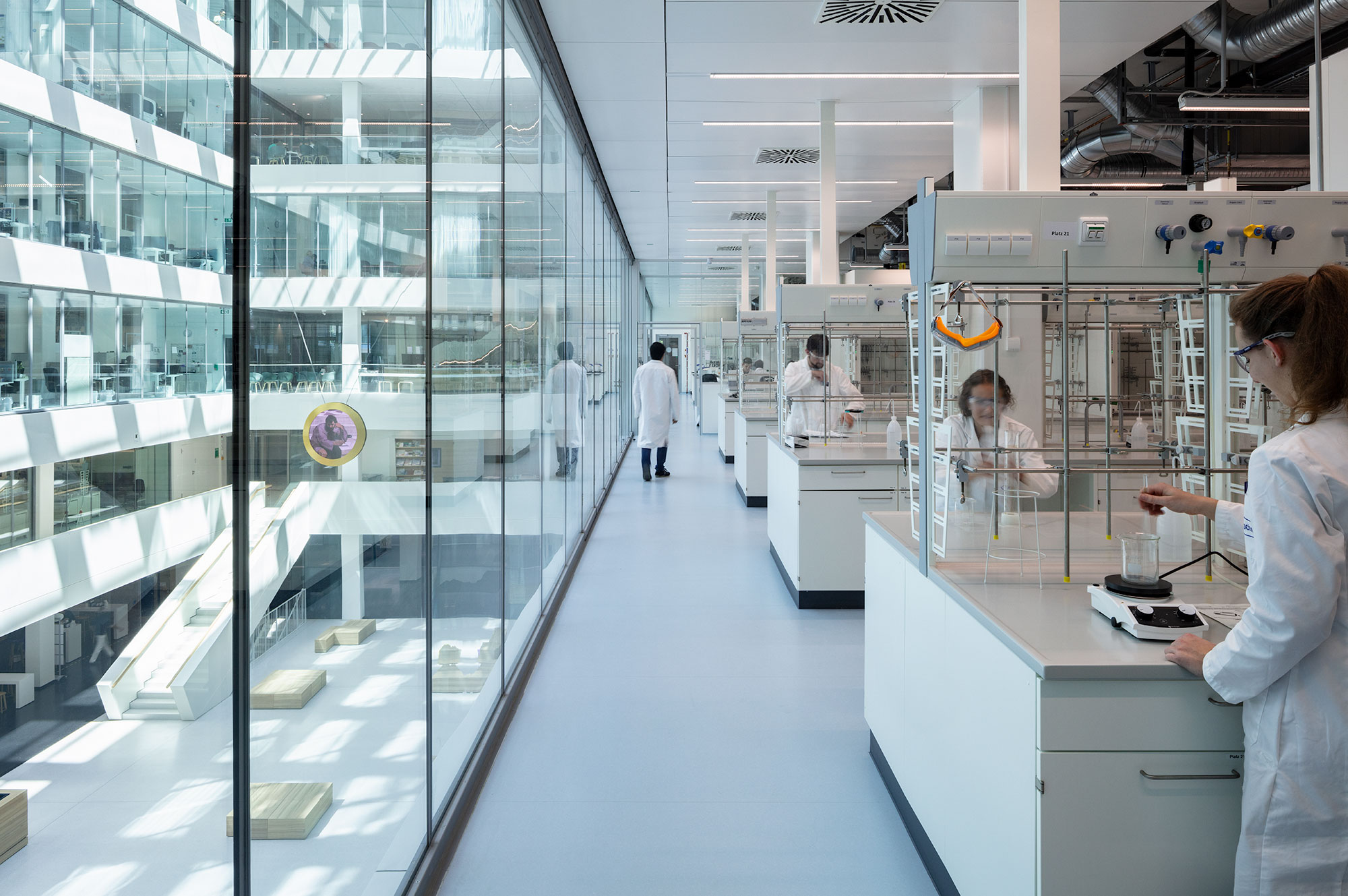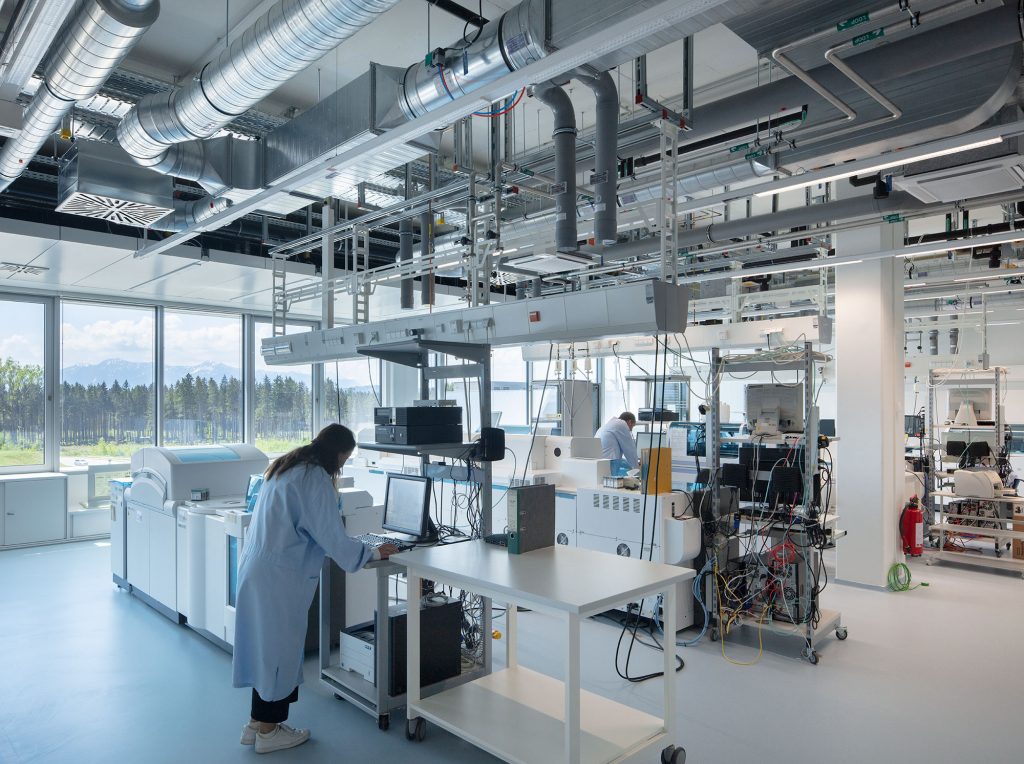 The Laboratory and Office Complex is the first building at the site in Penzberg, Upper Bavaria, in which the pharmaceutical and diagnostic divisions of Roche work together under the same roof. In addition to laboratory and office workstations, the new building on the edge of the Roche company site contains a training centre, a bistro, medical services and health centre.