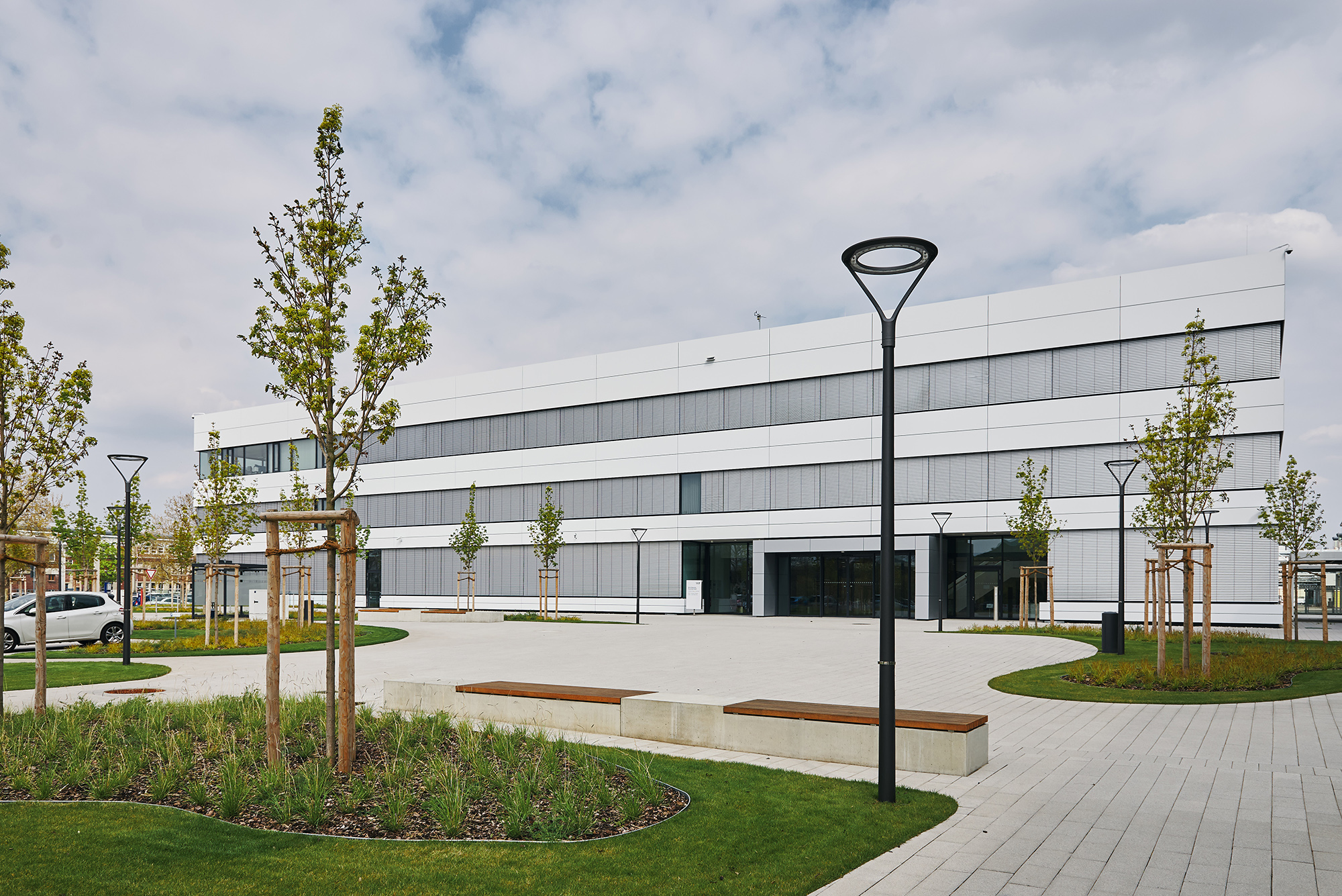 In the Open Campus Mannheim (OCM) support center we welcome customers and partners from all over the world. The building is the first at Roche in Mannheim to be located outside the security fence and one of many steps towards the new design of the Open Campus entrance area for the site. Its state-of-the-art facilities and focus on enabling interactive workflows for customers and employees provide guiding principles for future developments at Mannheim’s high-tech campus. Values such as transparency, openness and sustainability are reflected in its architecture and design features.